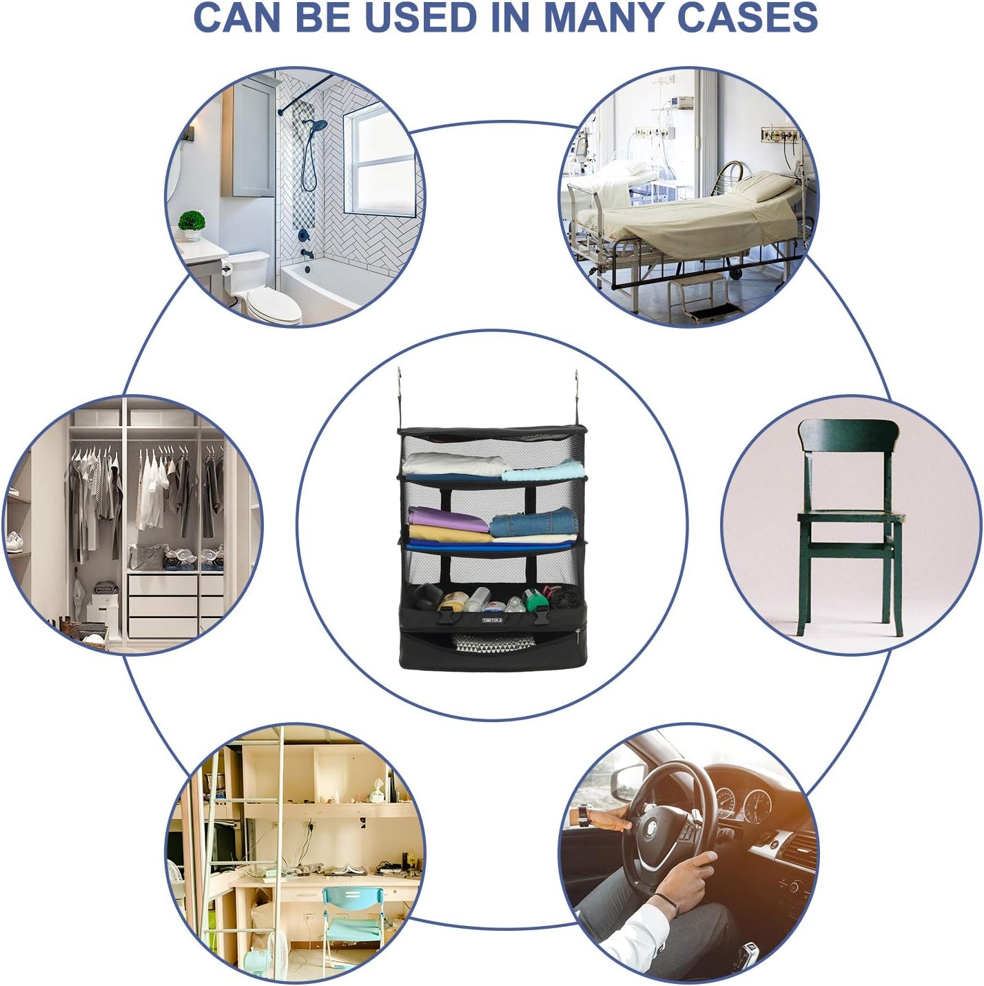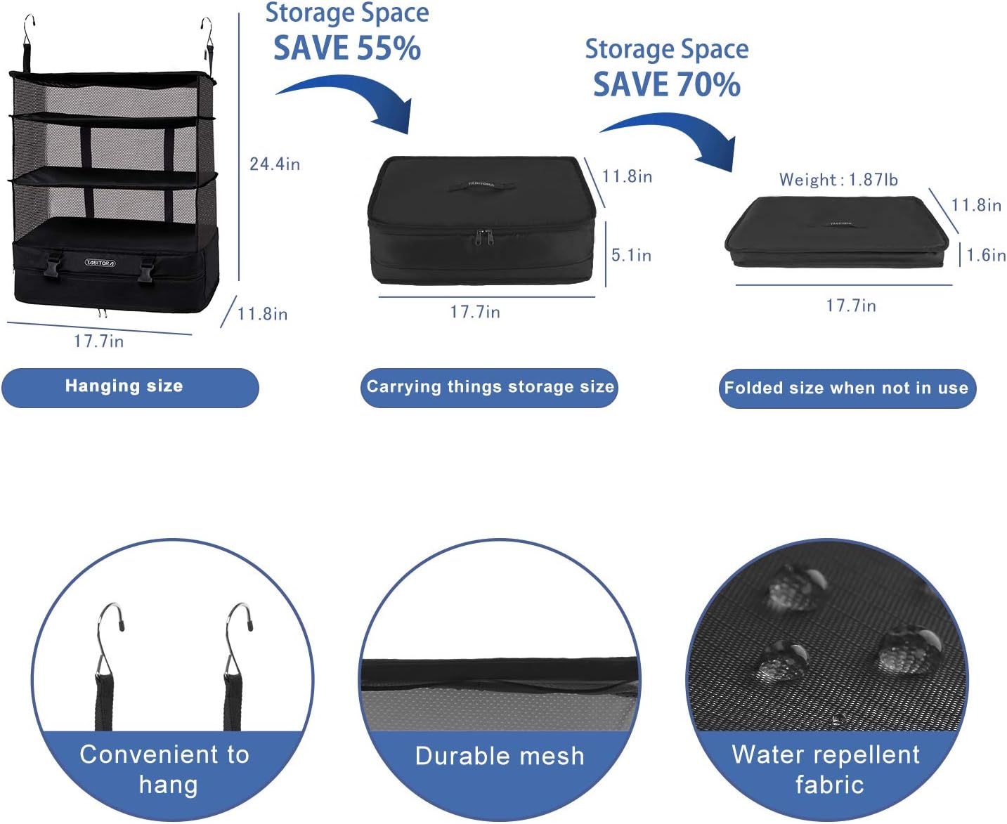 Featuring multiple shelves and compartments, this packing cube organizer allows you to neatly store and separate your clothes, shoes, accessories, and more. The hanging design makes it easy to access your items without unpacking, saving you time and hassle during your travels.
